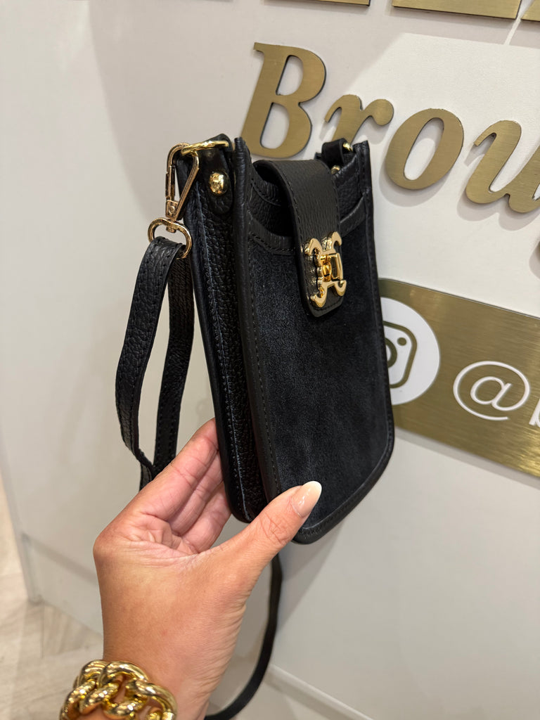 Black Leather suede cross body is backordered and will ship as soon as it is back in stock.