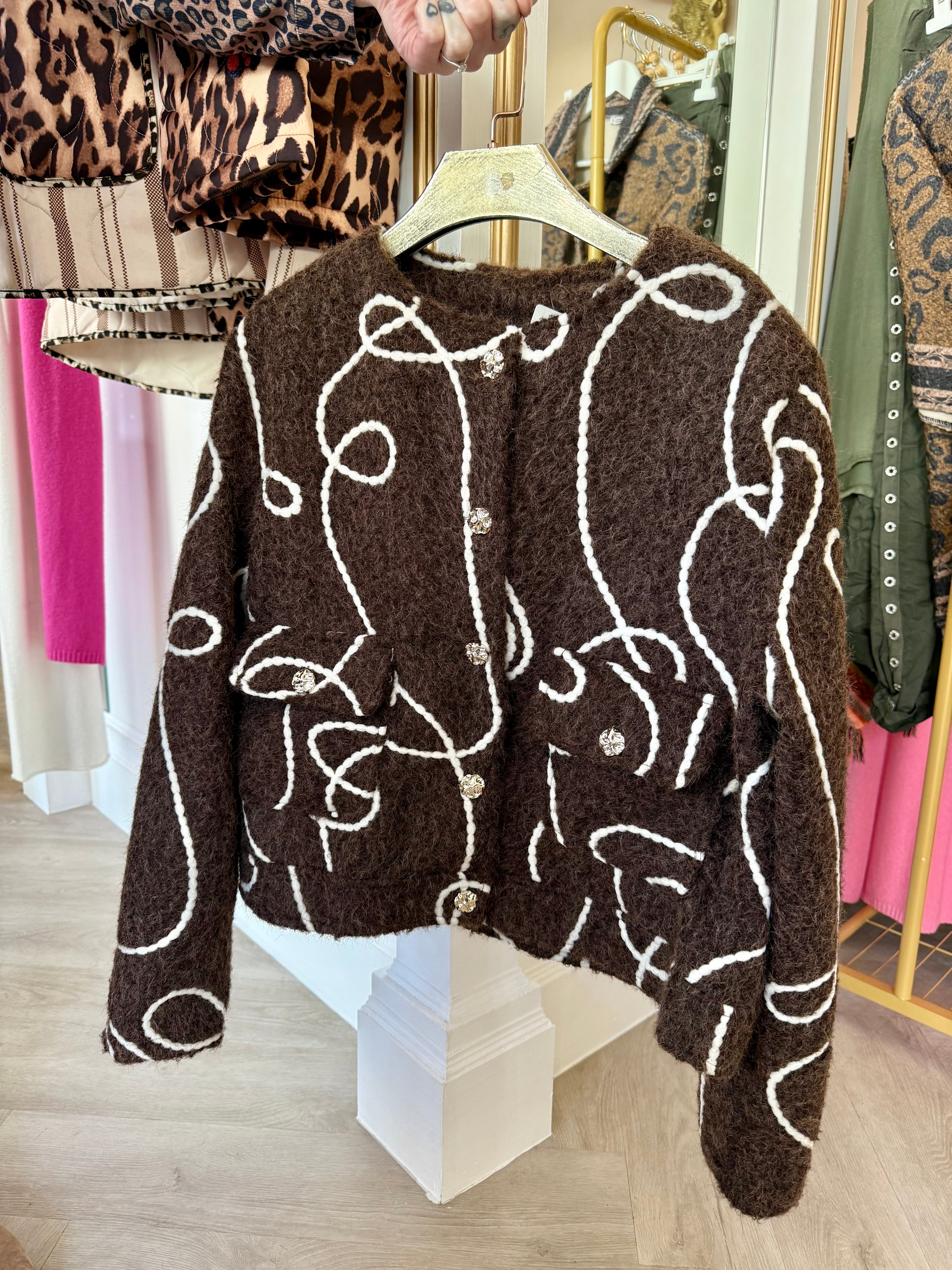 Chocolate Boxed swirl jacket is backordered and will ship as soon as it is back in stock.