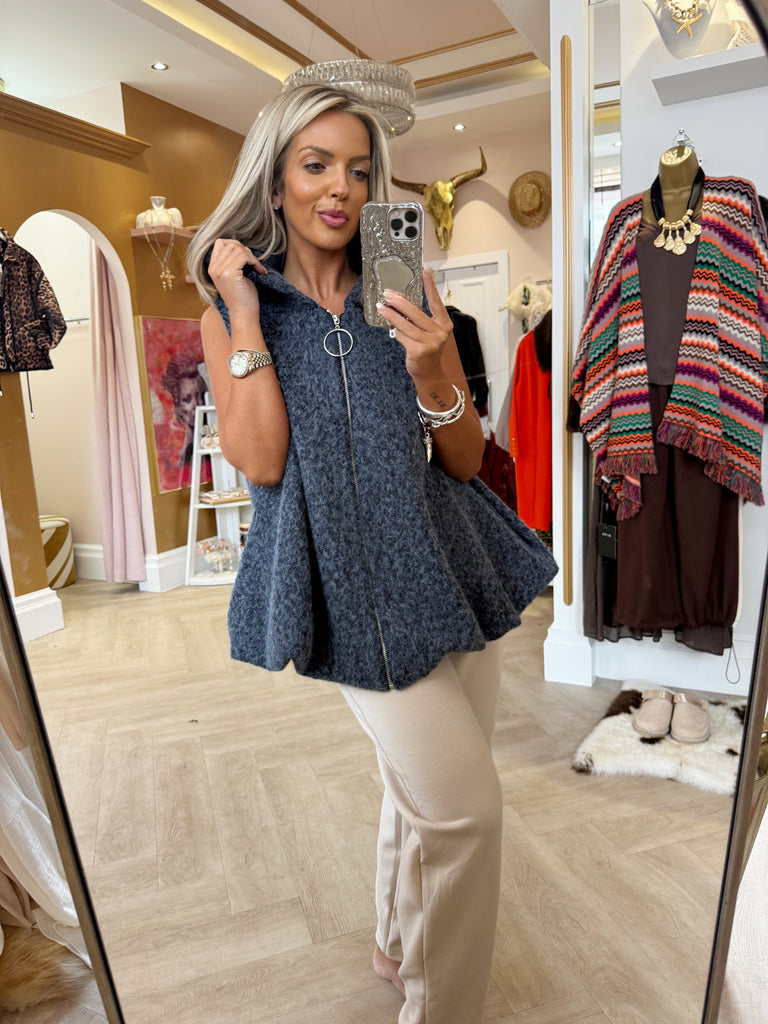 Navy Balloon hooded gilet is backordered and will ship as soon as it is back in stock.