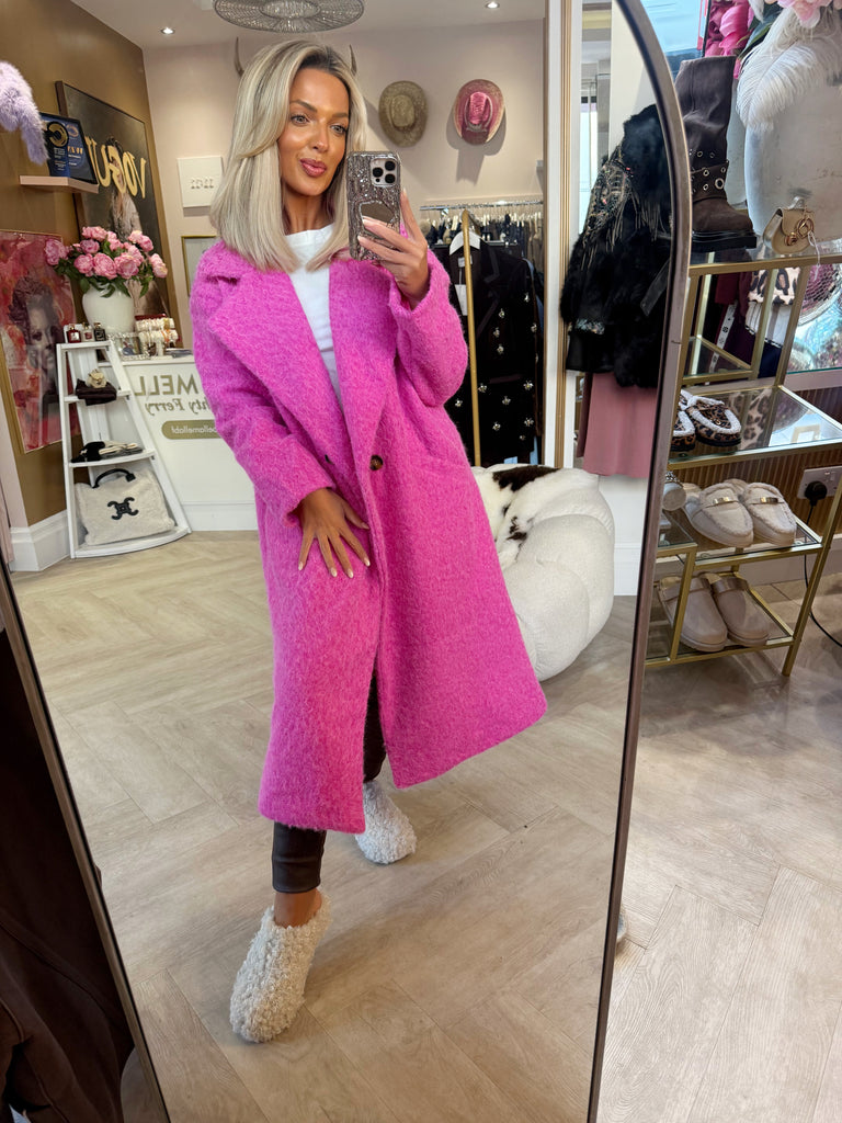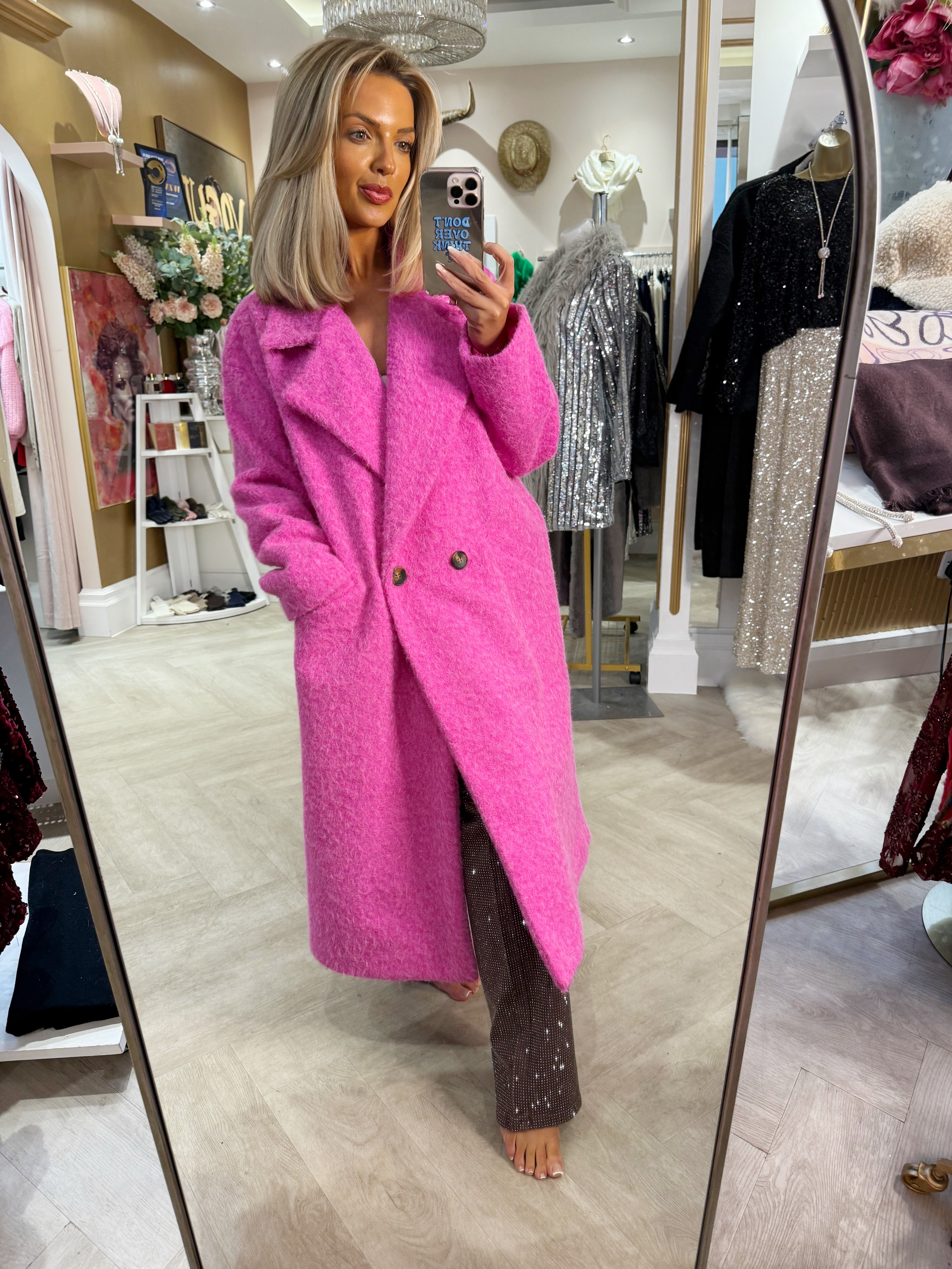 Pink button coat is backordered and will ship as soon as it is back in stock.