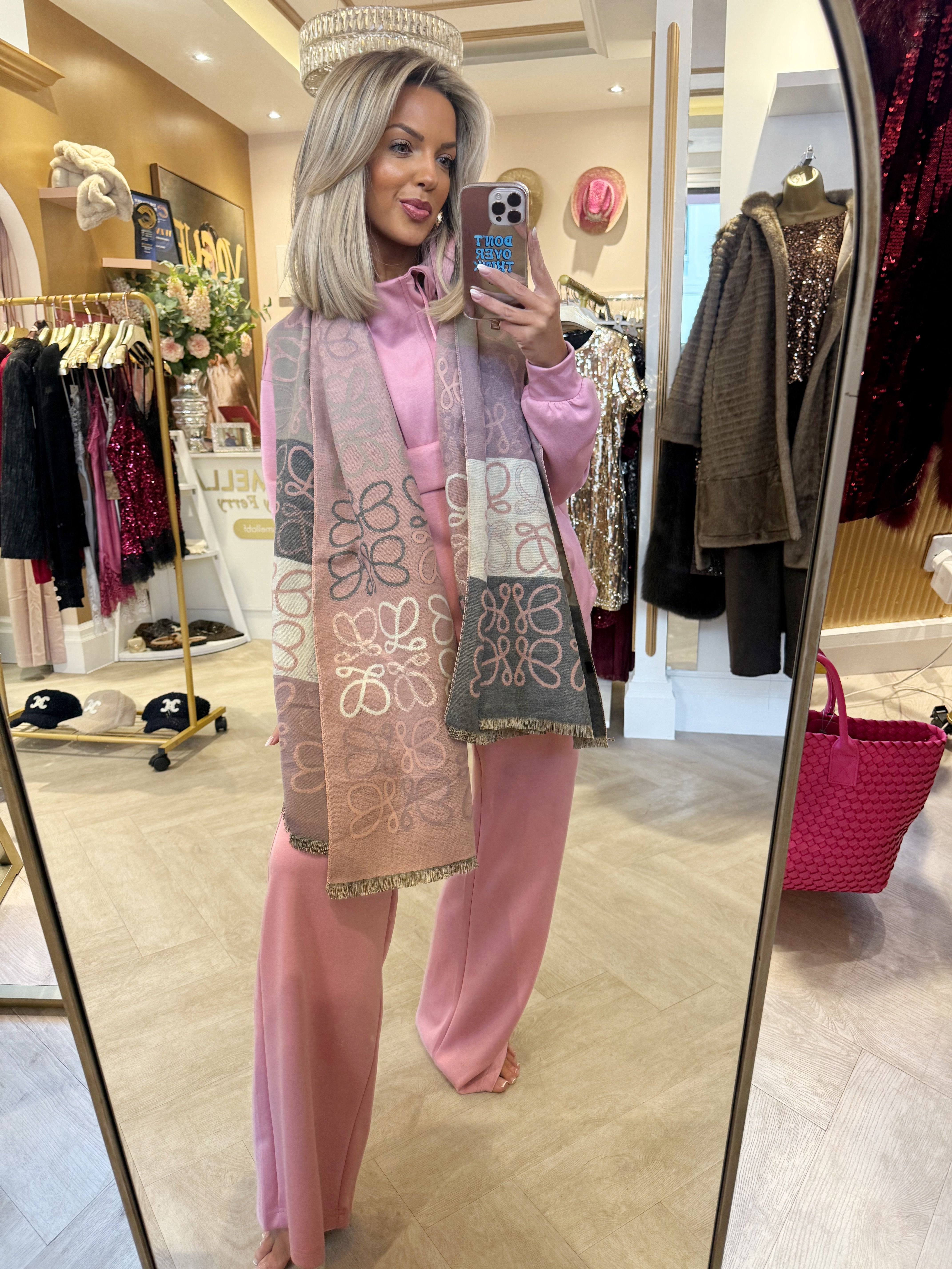 Pink patterned scarf