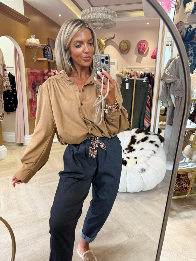 Mocha belted Diamonte pants