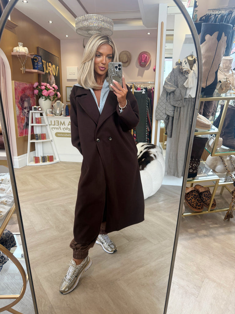 Chocolate Hooded duster coath