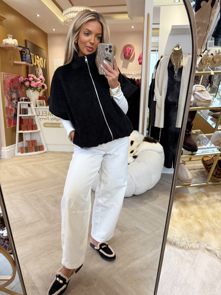 Black Cap sleeve zip up