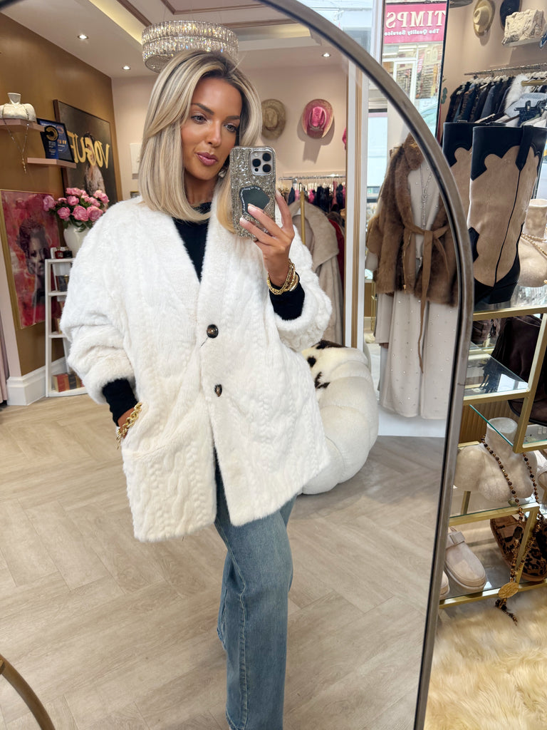 White faux fur jacket