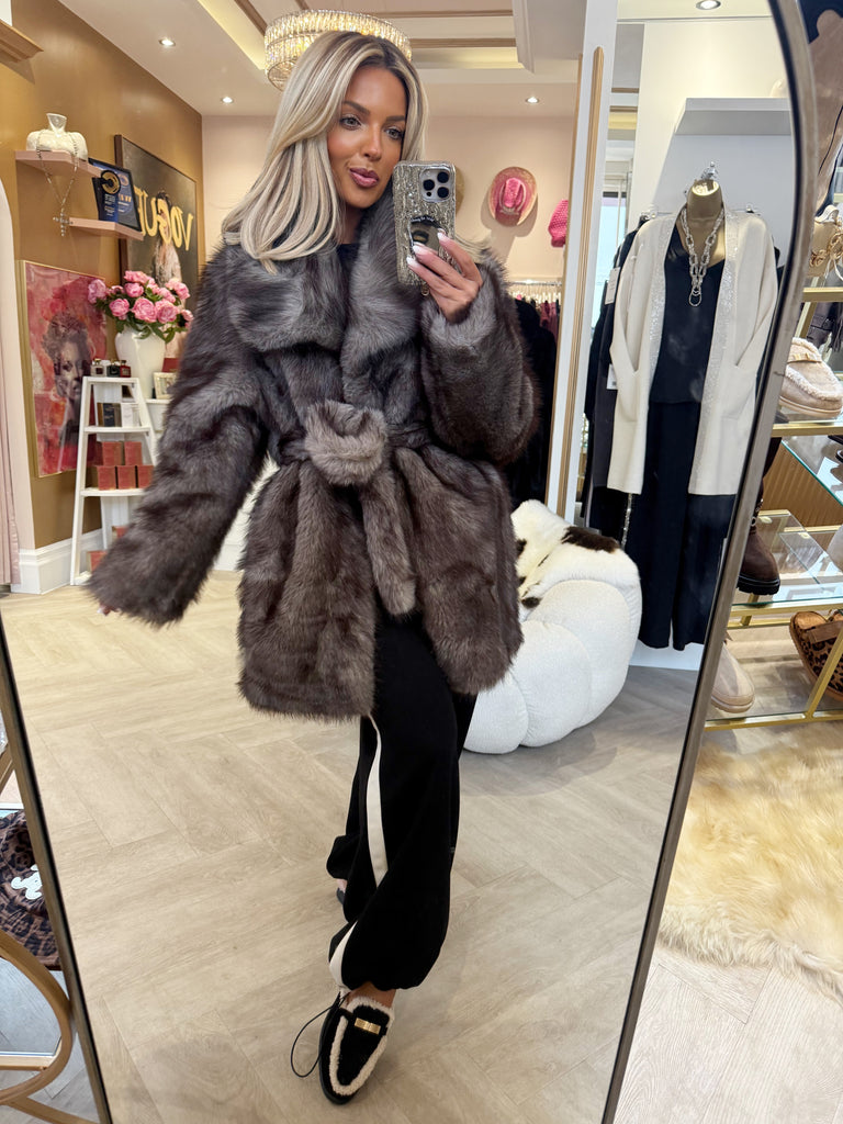 Luxury faux fur coat with belt
