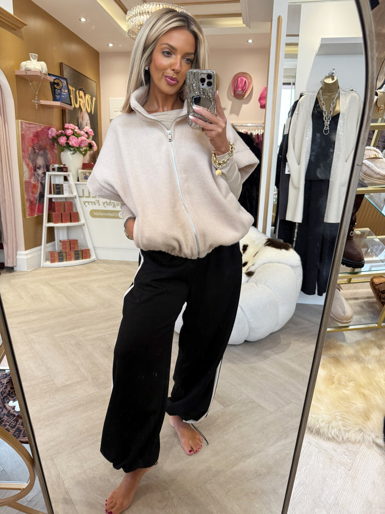 Black combo Cap sleeve zip up