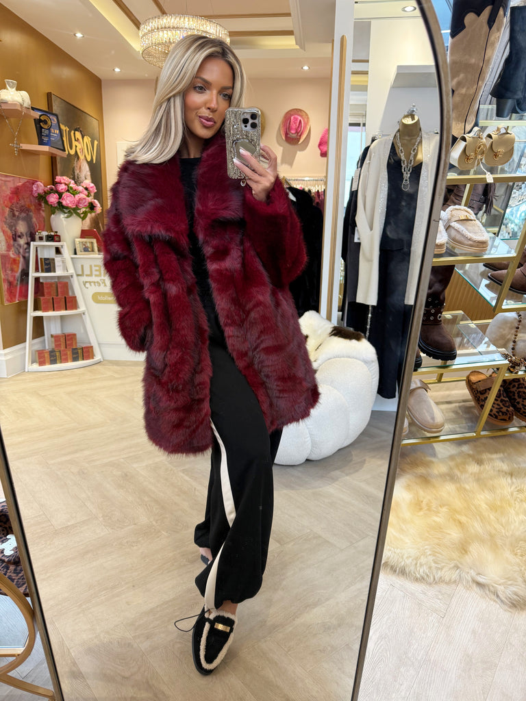 Burgundy Faux fur bucket hat