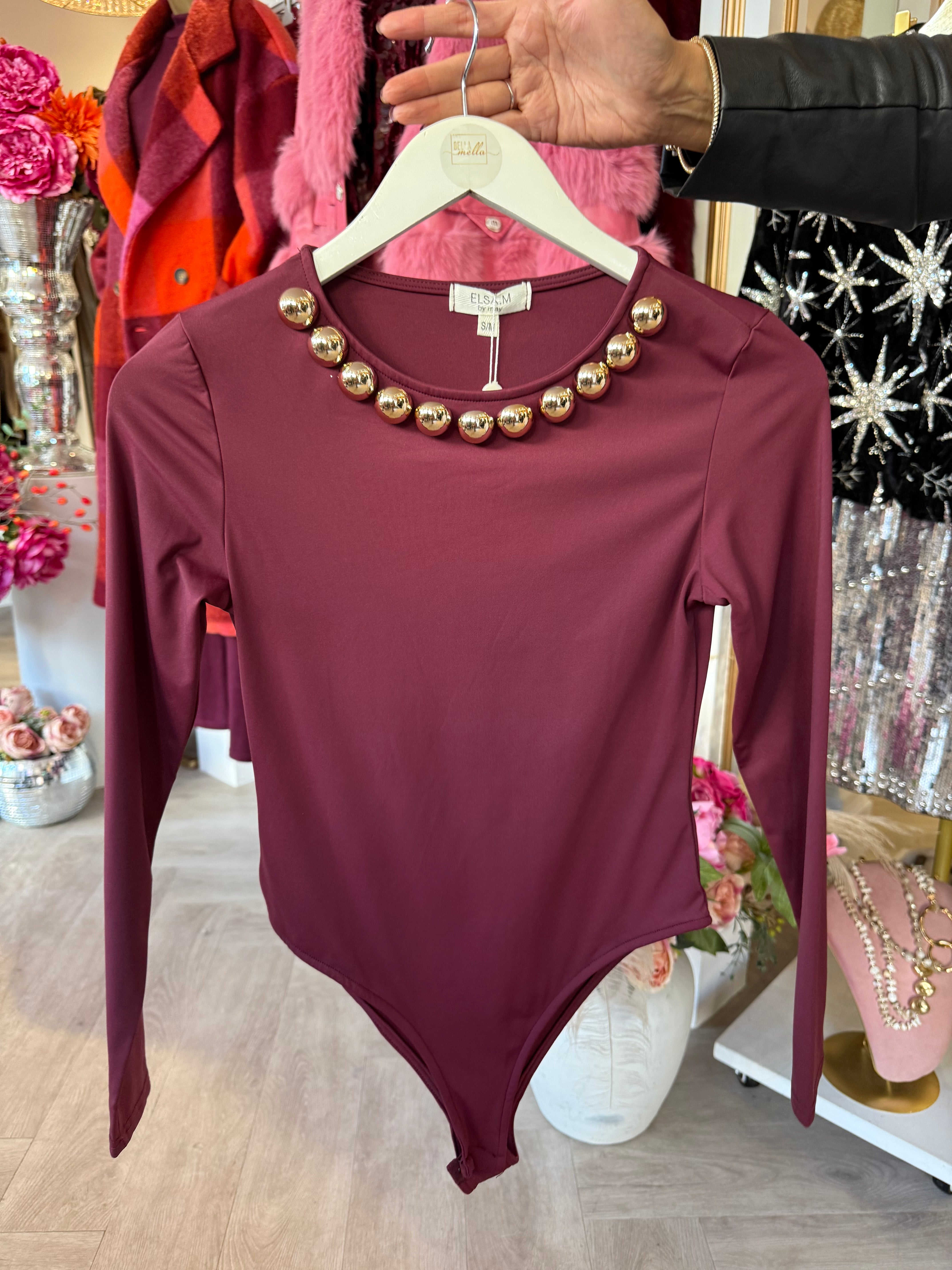 Burgundy Studded bodysuit - S/m 6/10 is backordered and will ship as soon as it is back in stock.