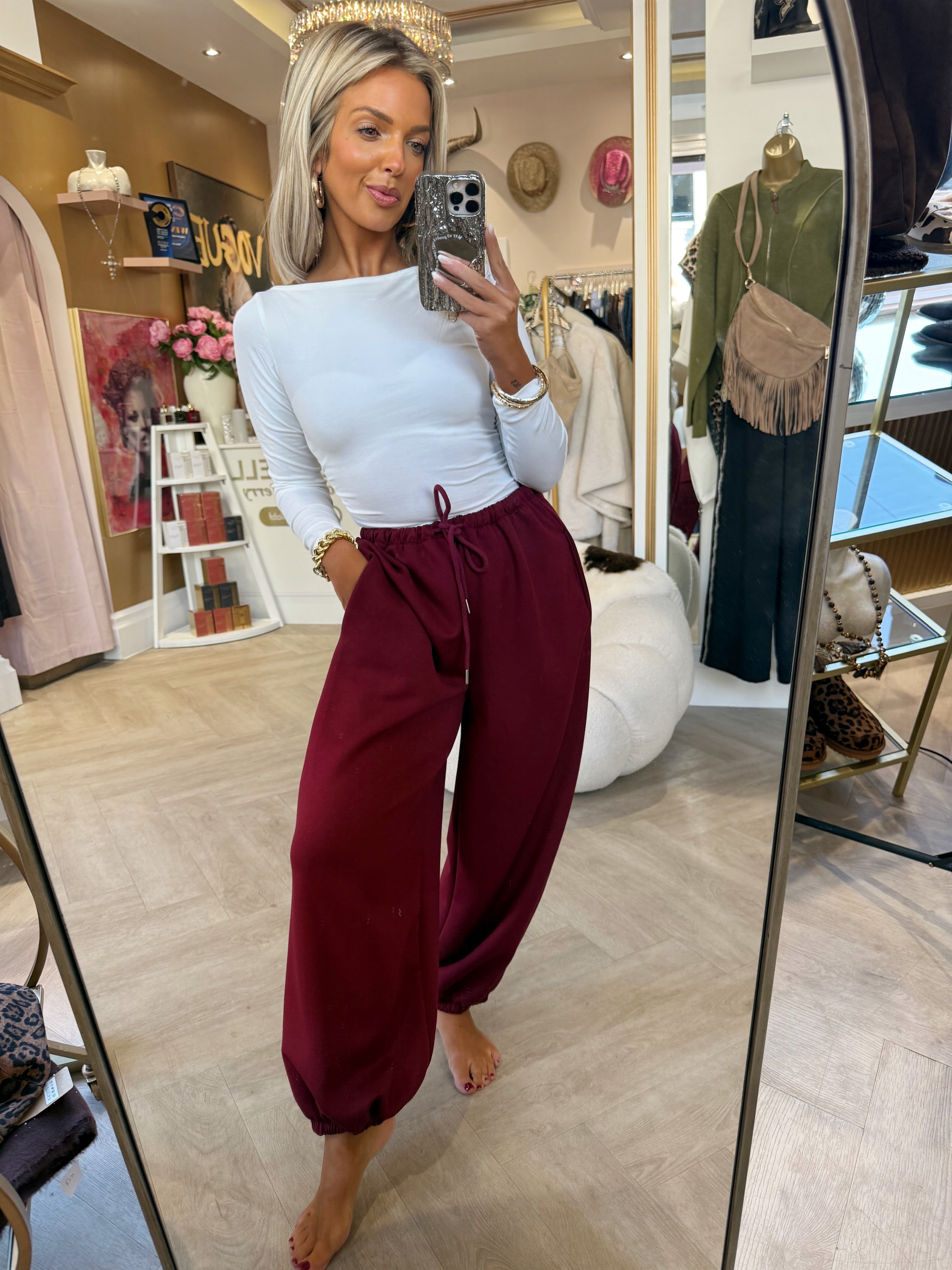 Burgundy balloon jogger is backordered and will ship as soon as it is back in stock.