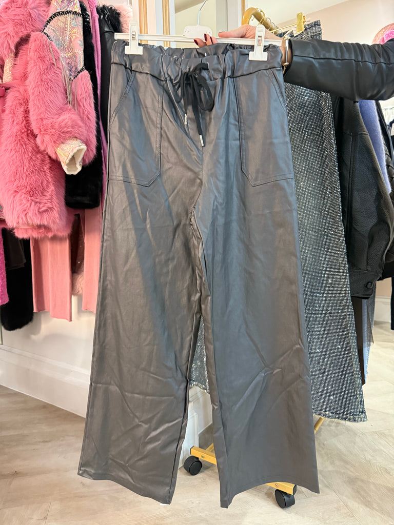 Charcoal wide leg wet look