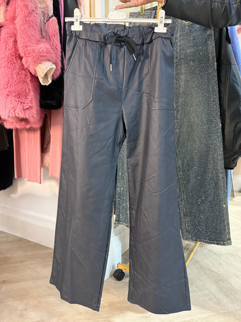 Navy wide leg wet look