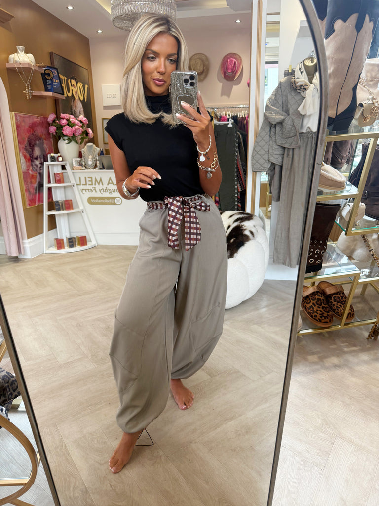 Taupe belted balloon pant