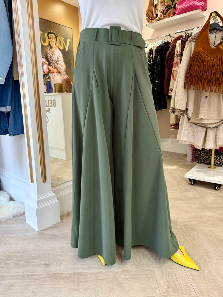 Khaki extreme belted flare