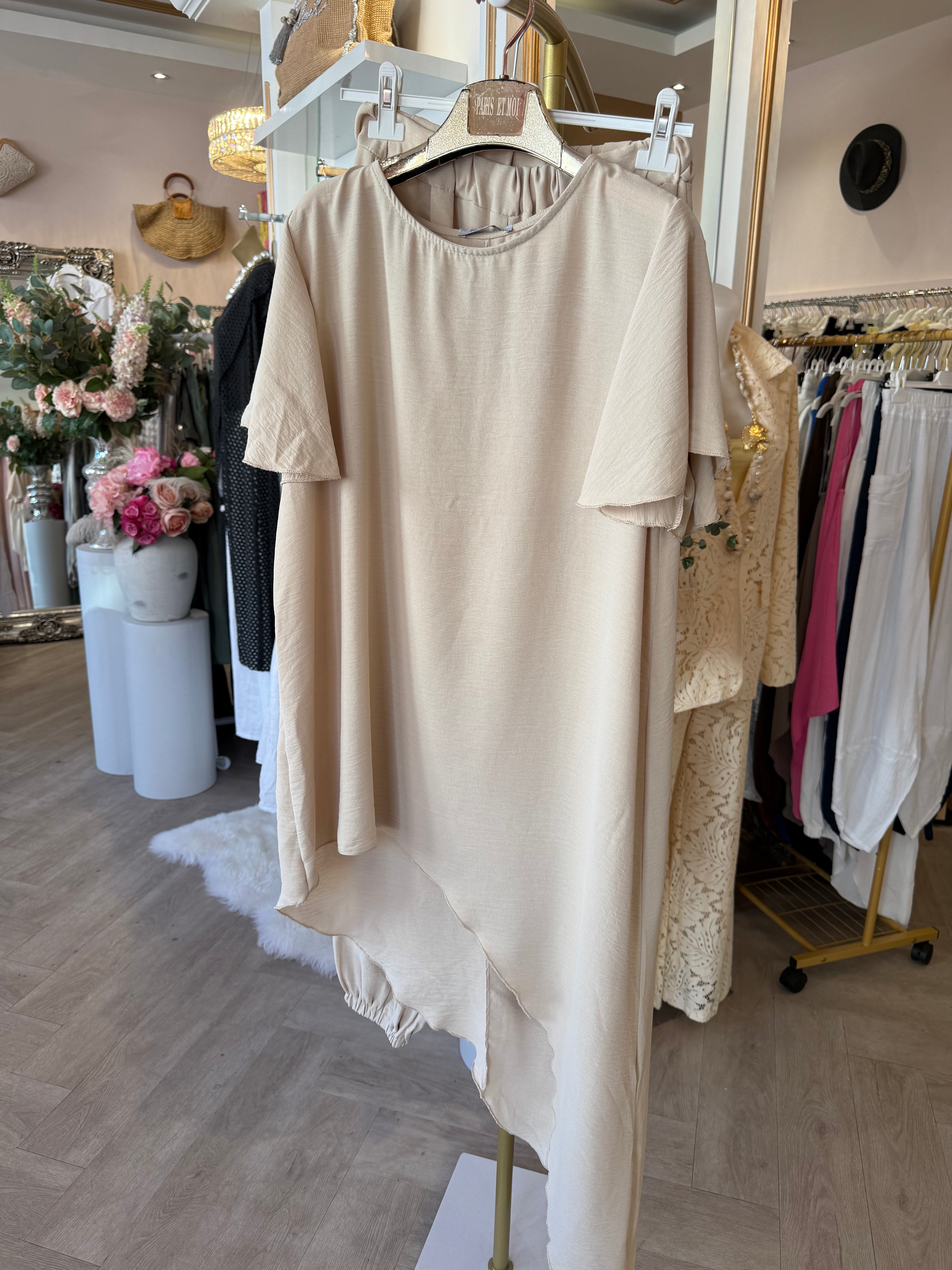 Beige Sleeved draped set is backordered and will ship as soon as it is back in stock.