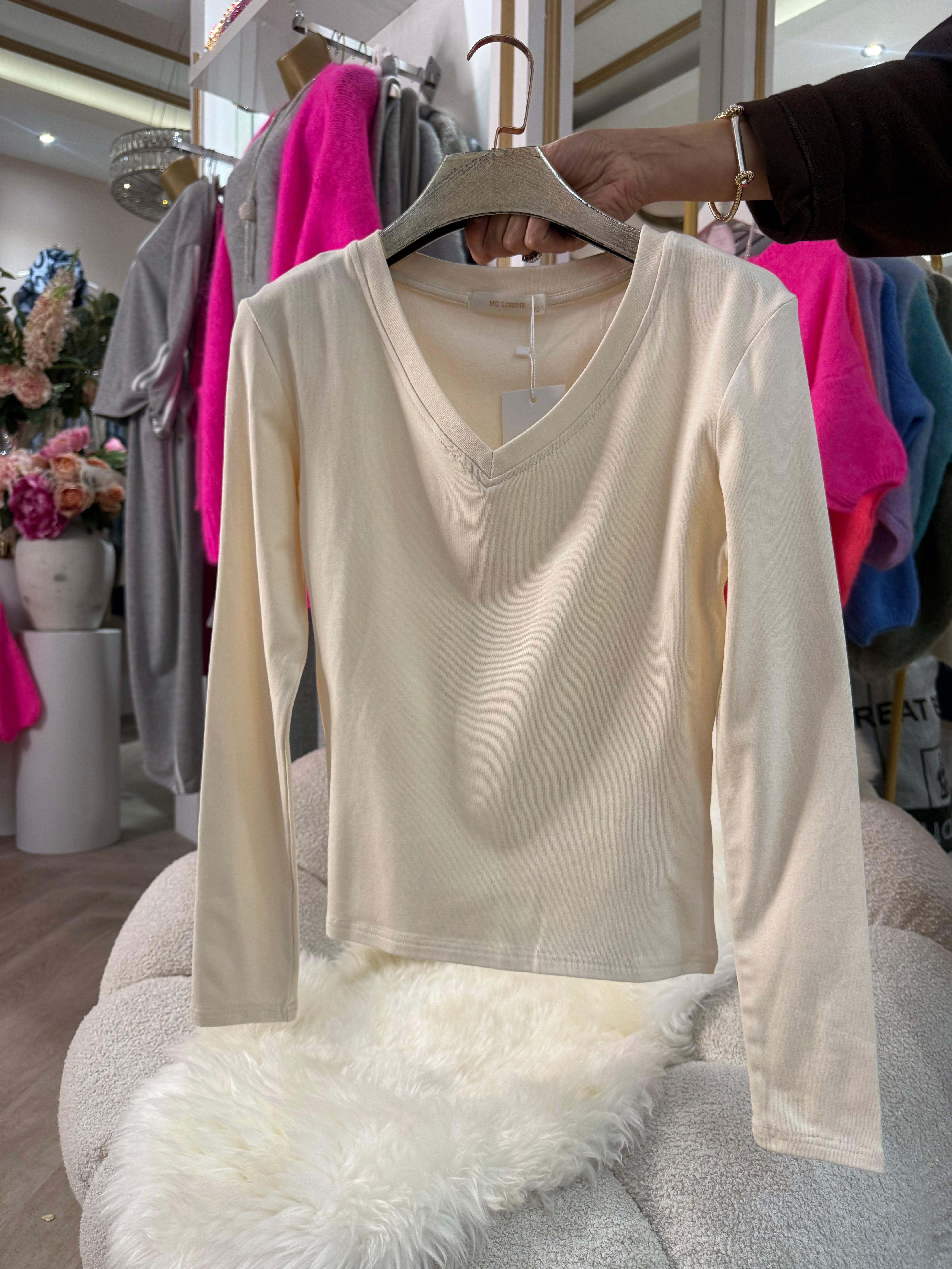 Beige V neck basic is backordered and will ship as soon as it is back in stock.