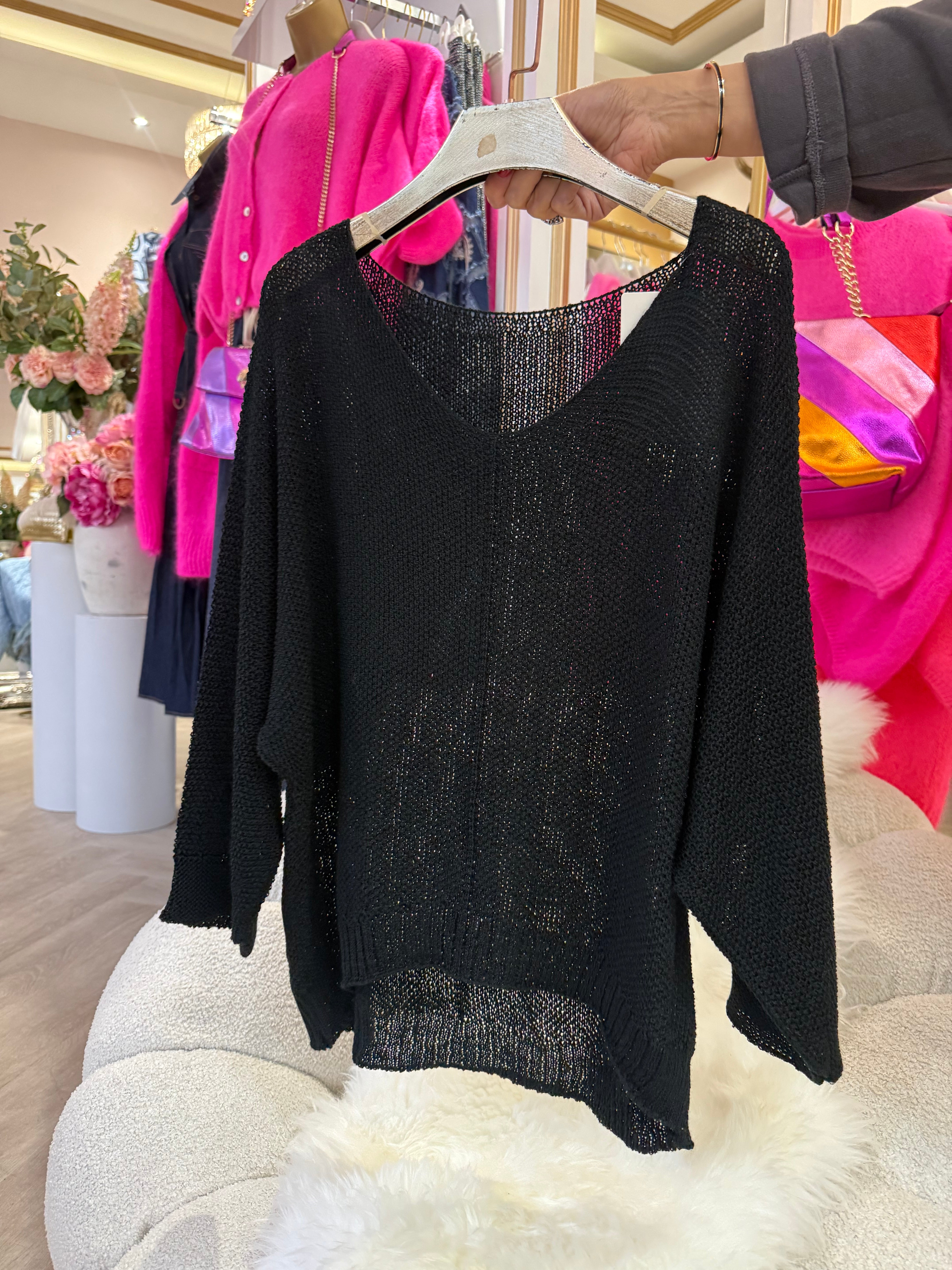 Black fine knit top is backordered and will ship as soon as it is back in stock.
