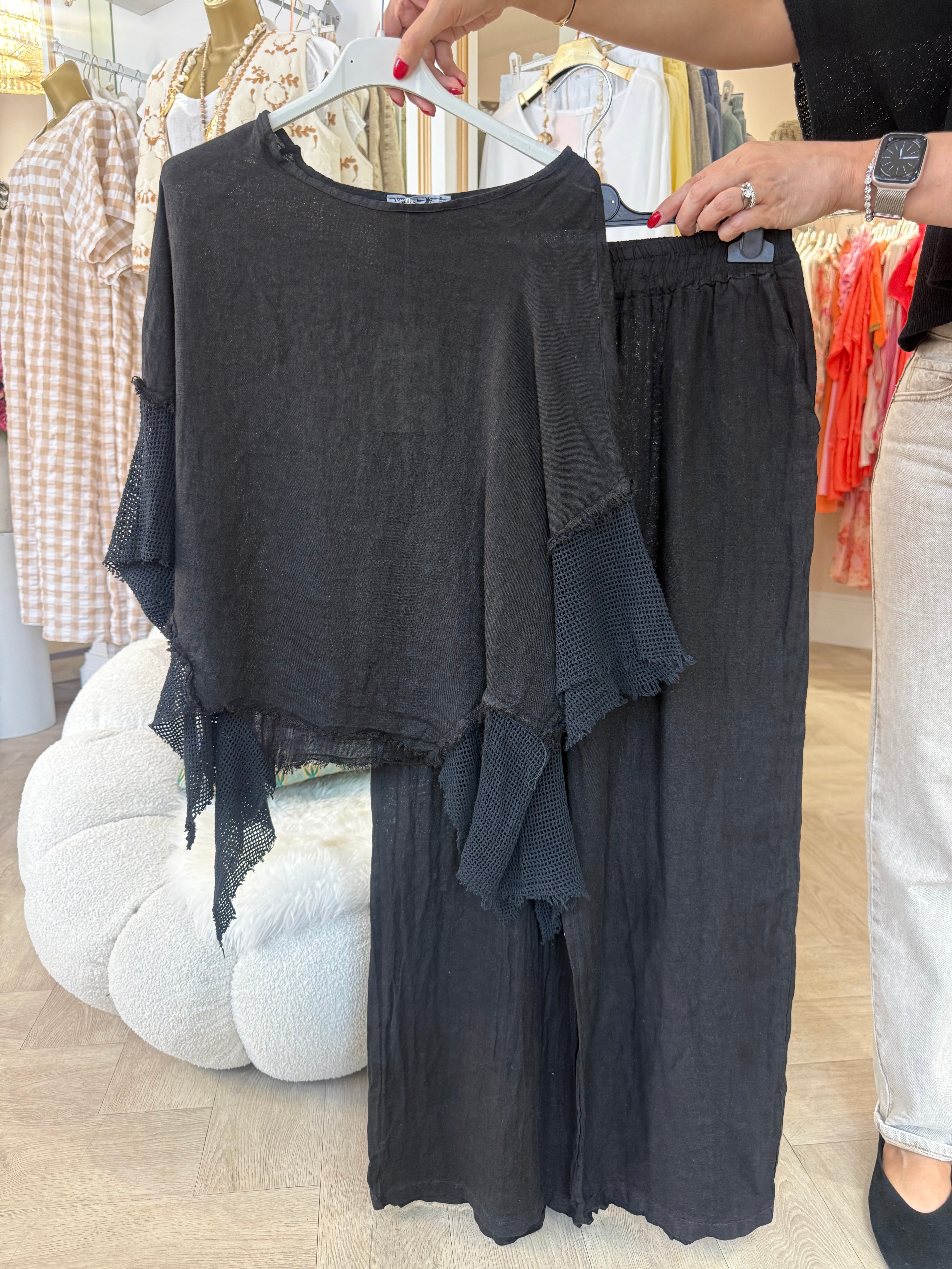 Black linen set is backordered and will ship as soon as it is back in stock.