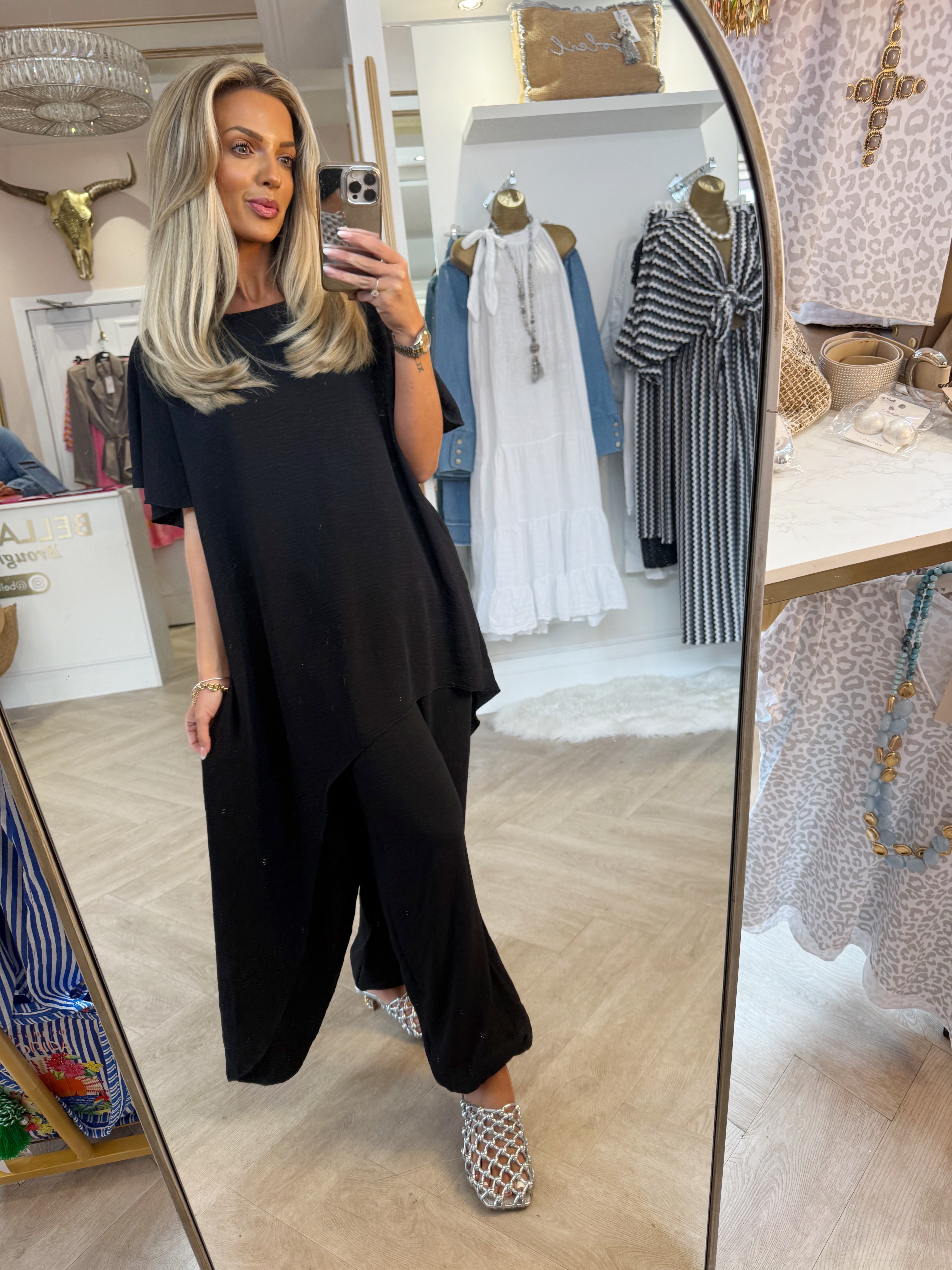 Black Sleeved draped set is backordered and will ship as soon as it is back in stock.