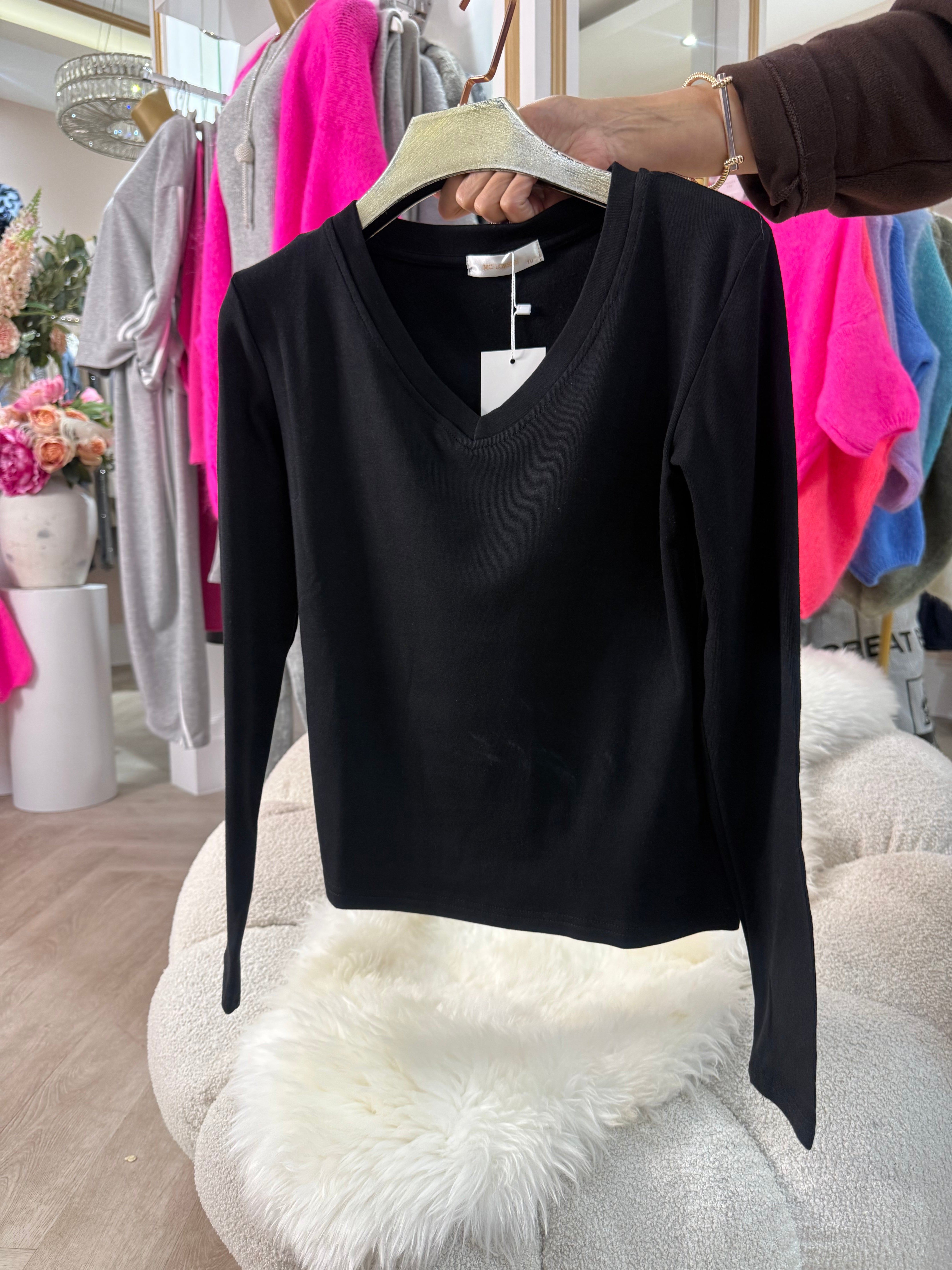 Black V neck basic is backordered and will ship as soon as it is back in stock.