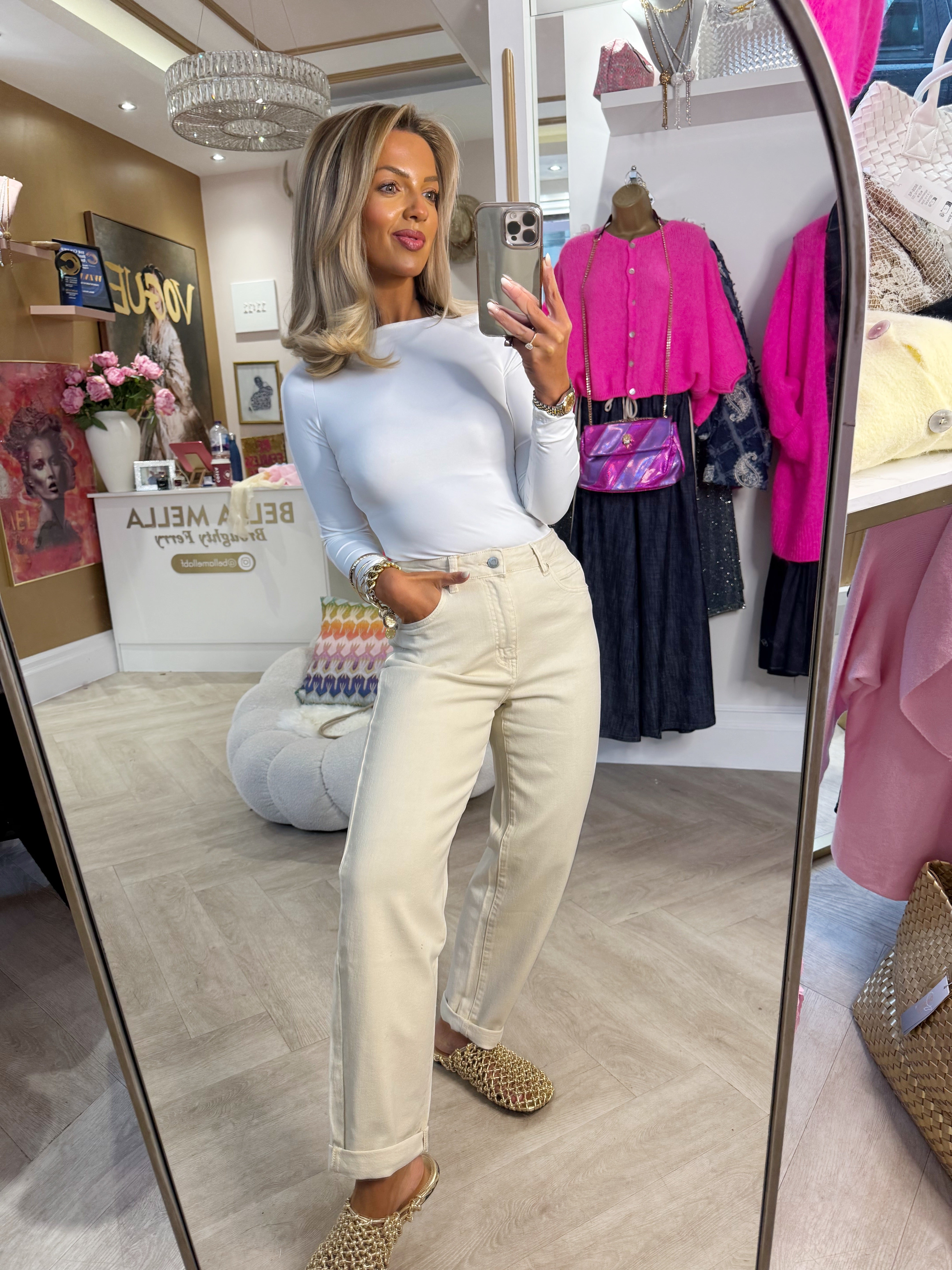 Cream mom Jean - Xs (34) is backordered and will ship as soon as it is back in stock.