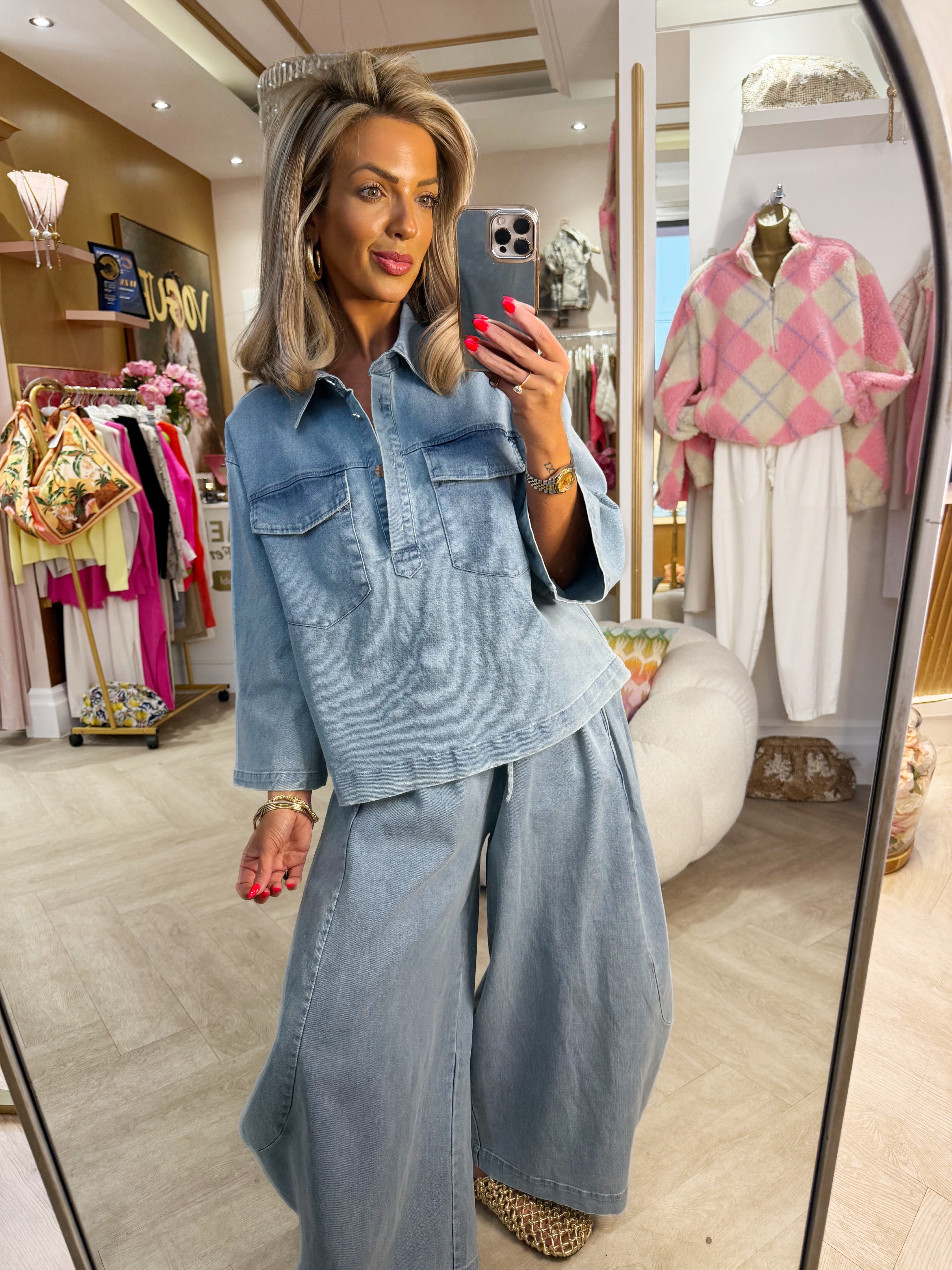Denim shirt - Medium 12/14 is backordered and will ship as soon as it is back in stock.