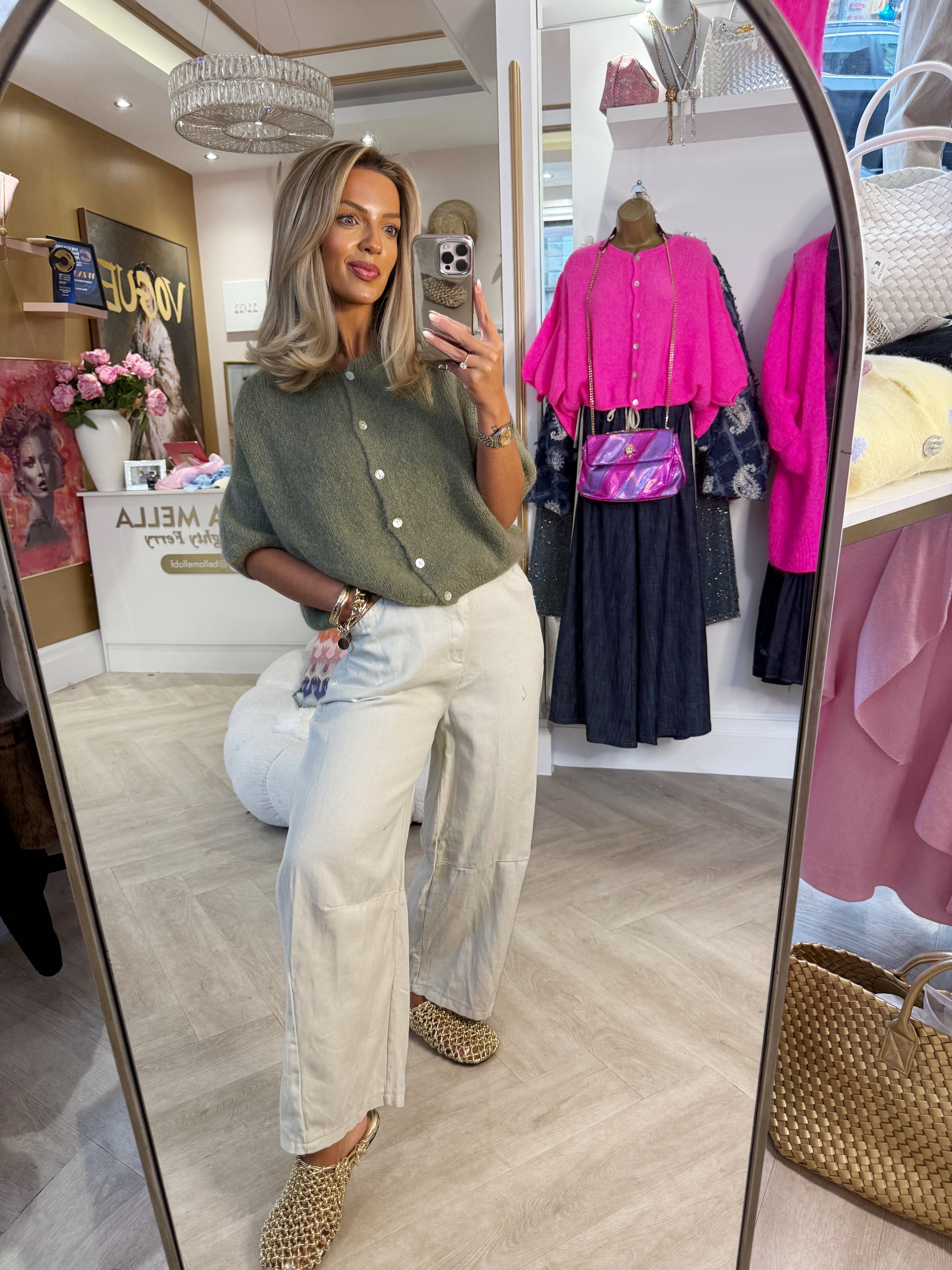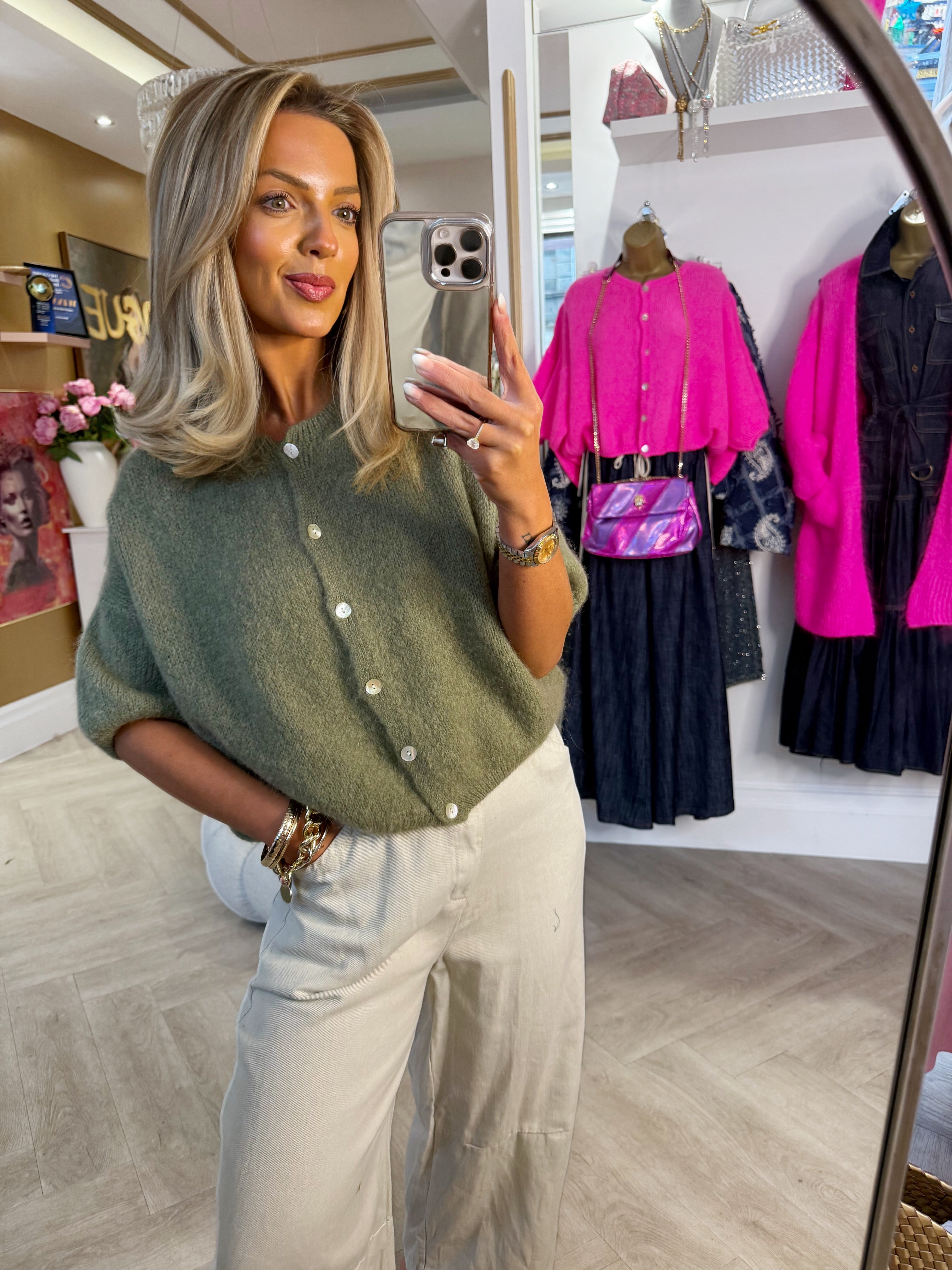 Khaki Cropped mohair cardigan is backordered and will ship as soon as it is back in stock.
