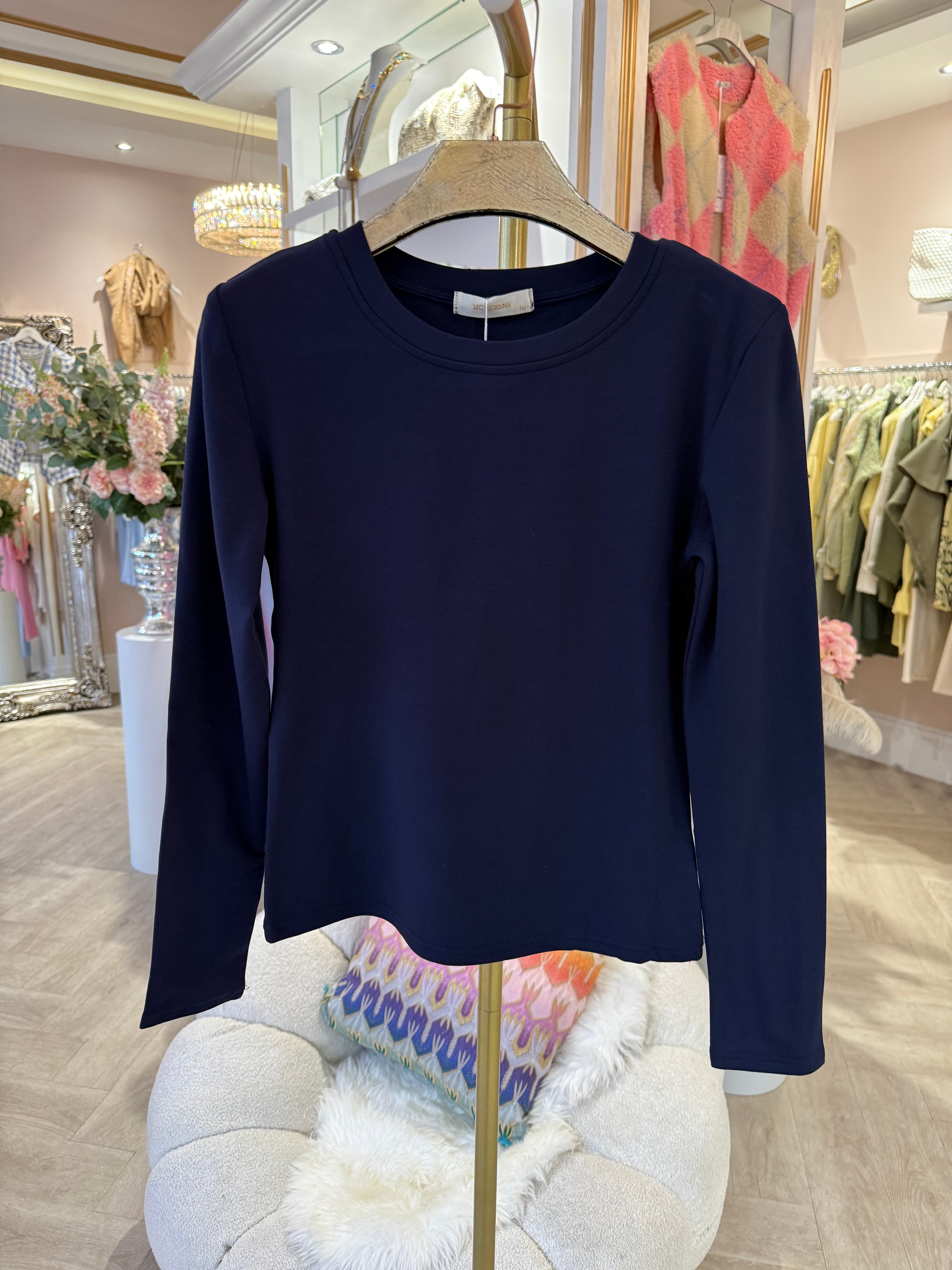 Navy Long sleeve basic is backordered and will ship as soon as it is back in stock.
