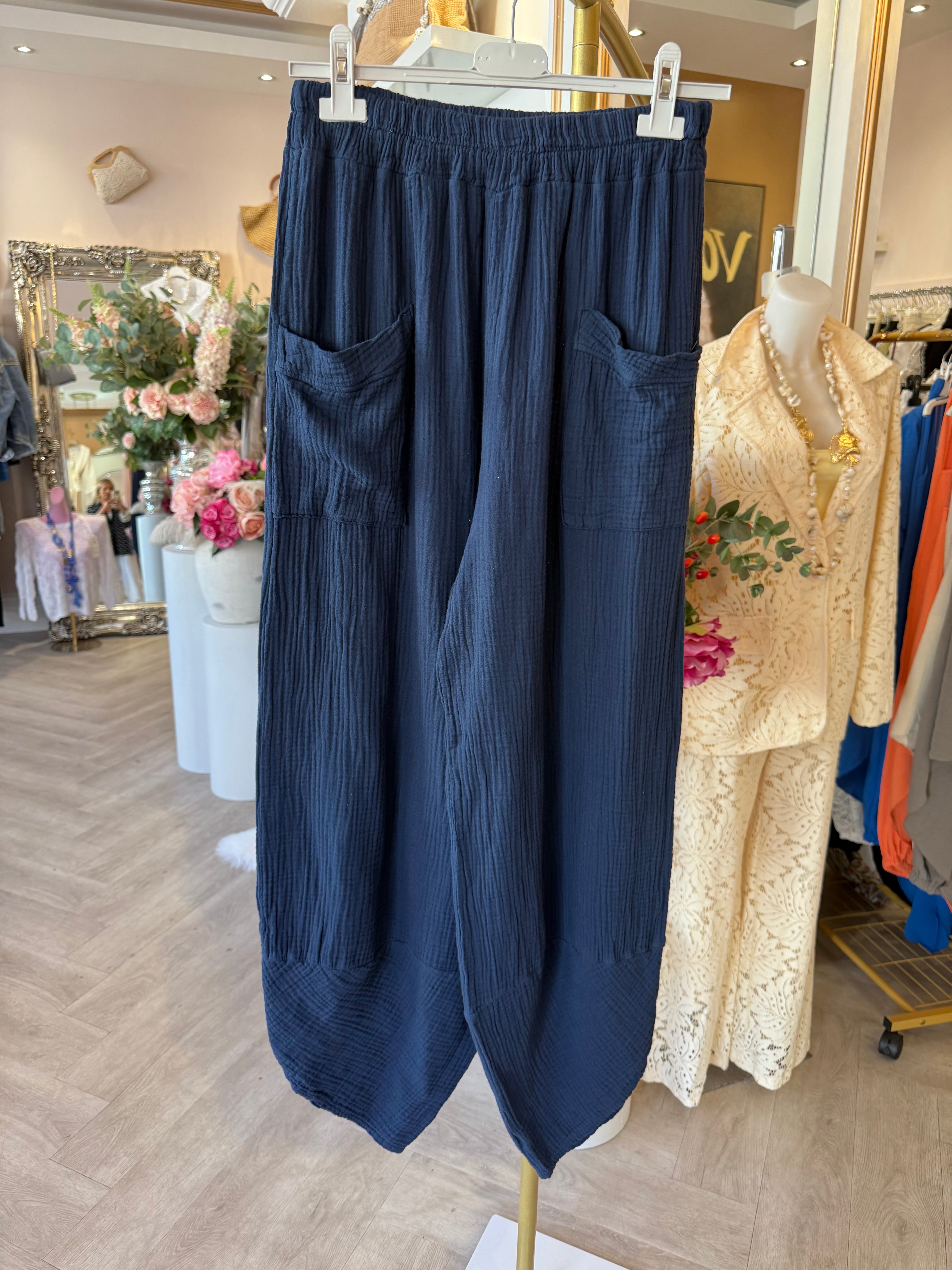 Navy pocket harem pant is backordered and will ship as soon as it is back in stock.