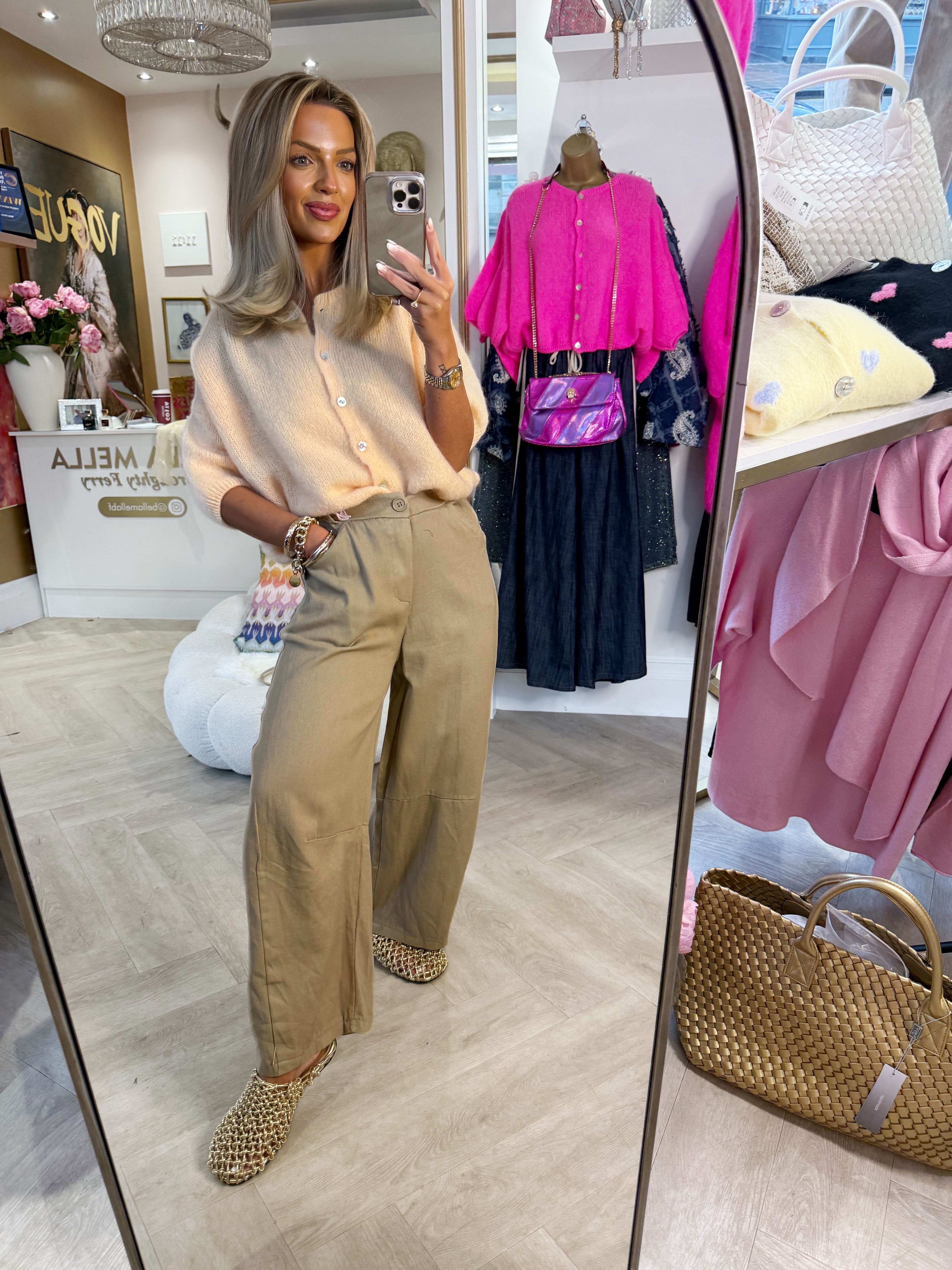 Peach Cropped mohair cardigan is backordered and will ship as soon as it is back in stock.