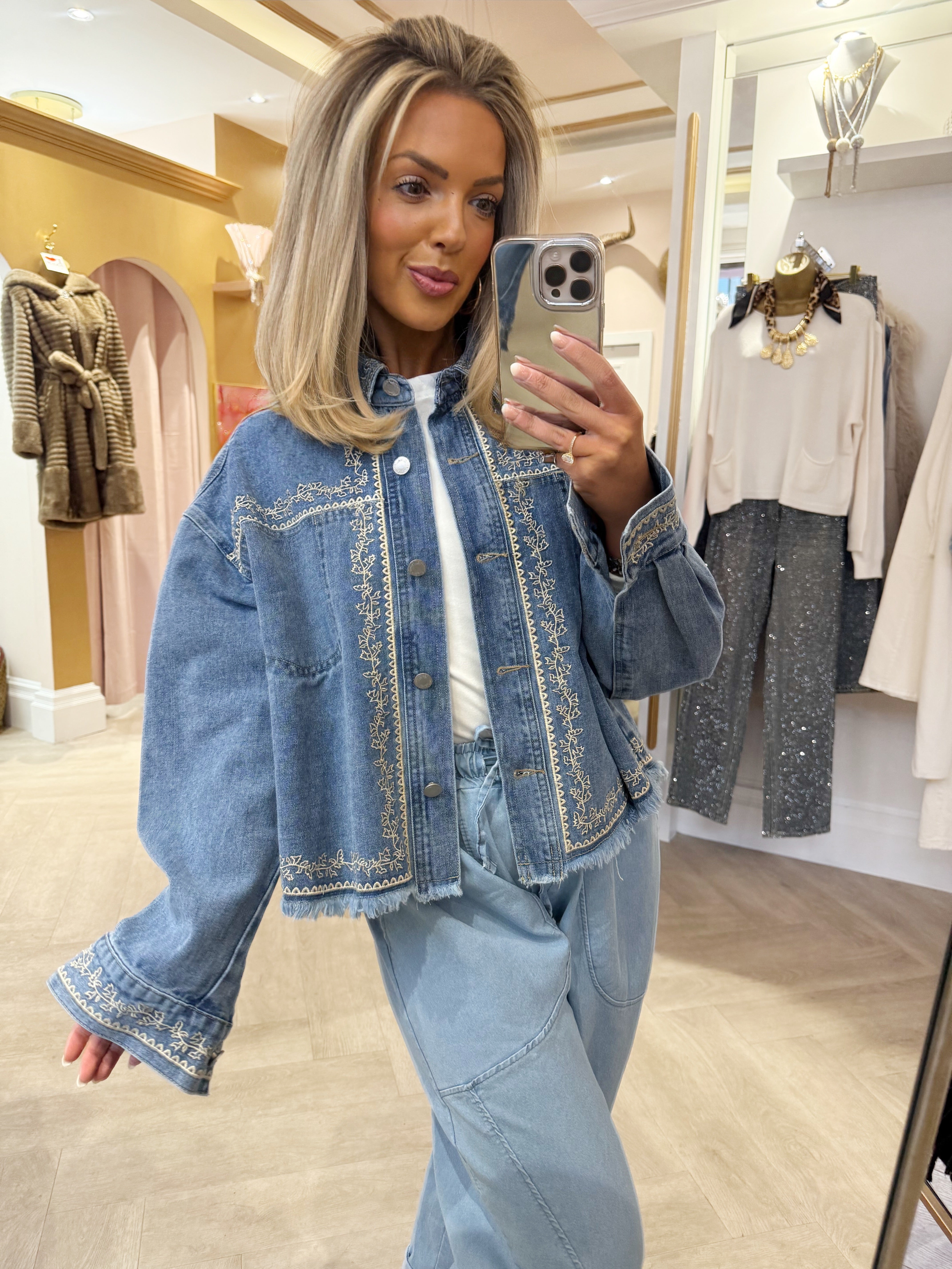 Embroidered denim jacket - S/m 8/12 is backordered and will ship as soon as it is back in stock.