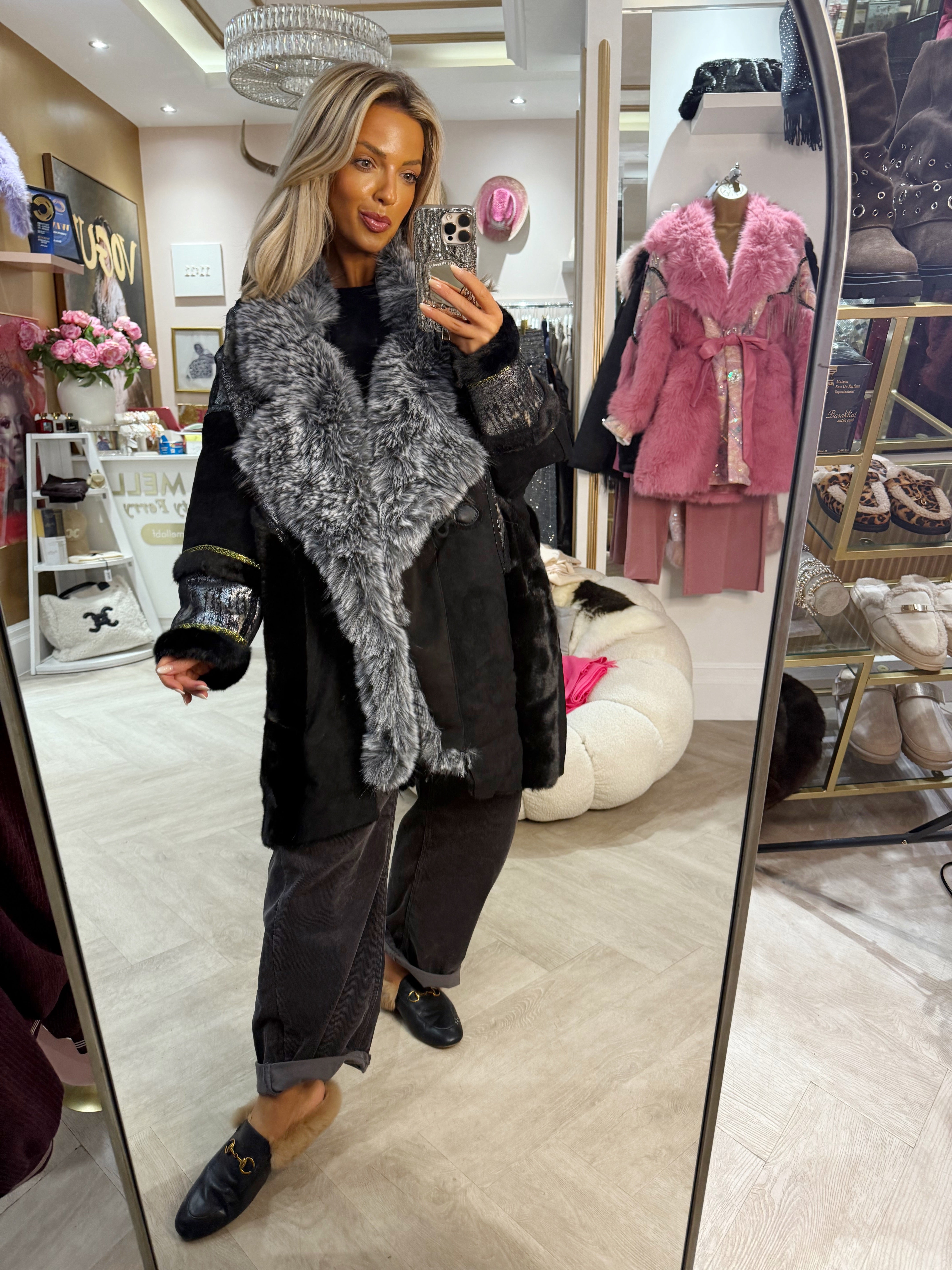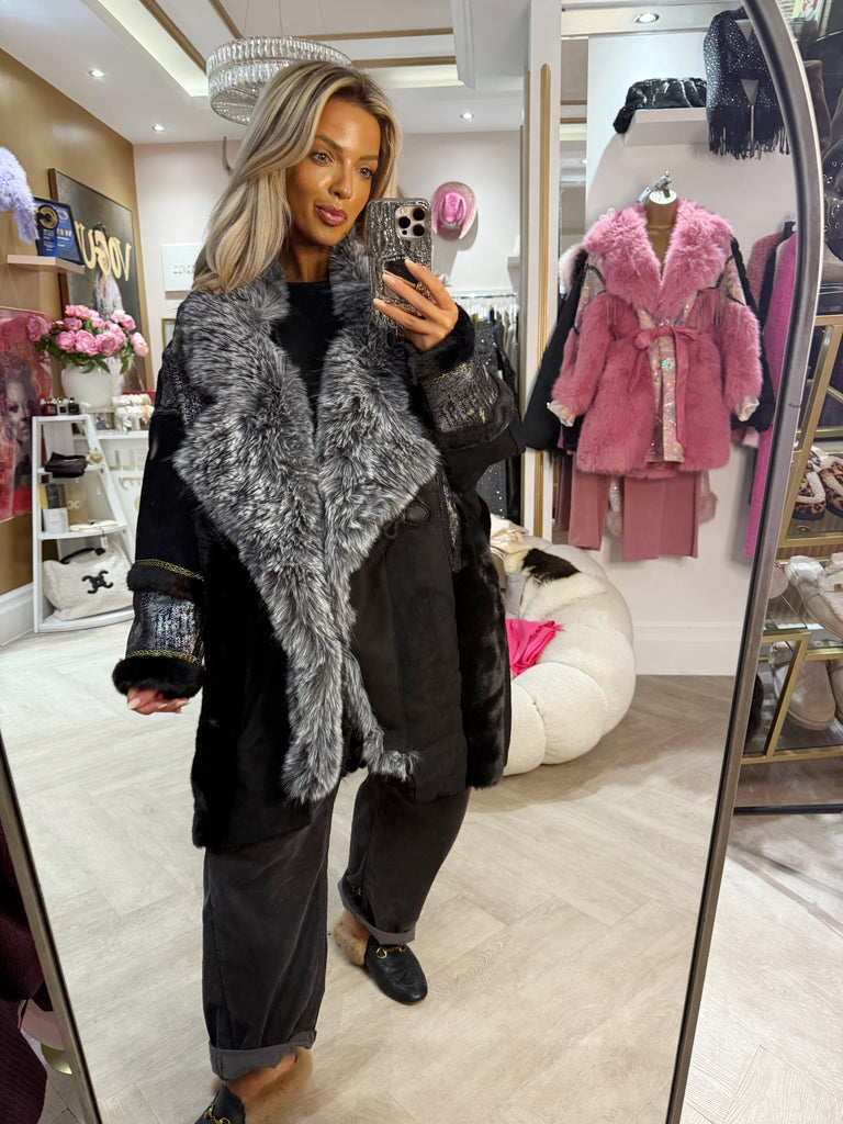 Black Vintage luxe faux fur coat is backordered and will ship as soon as it is back in stock.